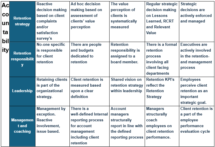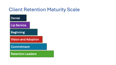 Once collected, assessment responses should be analyzed and shared with the executive team to guide discussions on retention priorities. Over time, organizations should track progress against the baseline and use the results to refine training efforts, identify areas for improvement, and reinforce best practices. The insights gained from the assessment provide valuable direction, helping organizations move from reactive client management to a proactive and strategic retention approach.