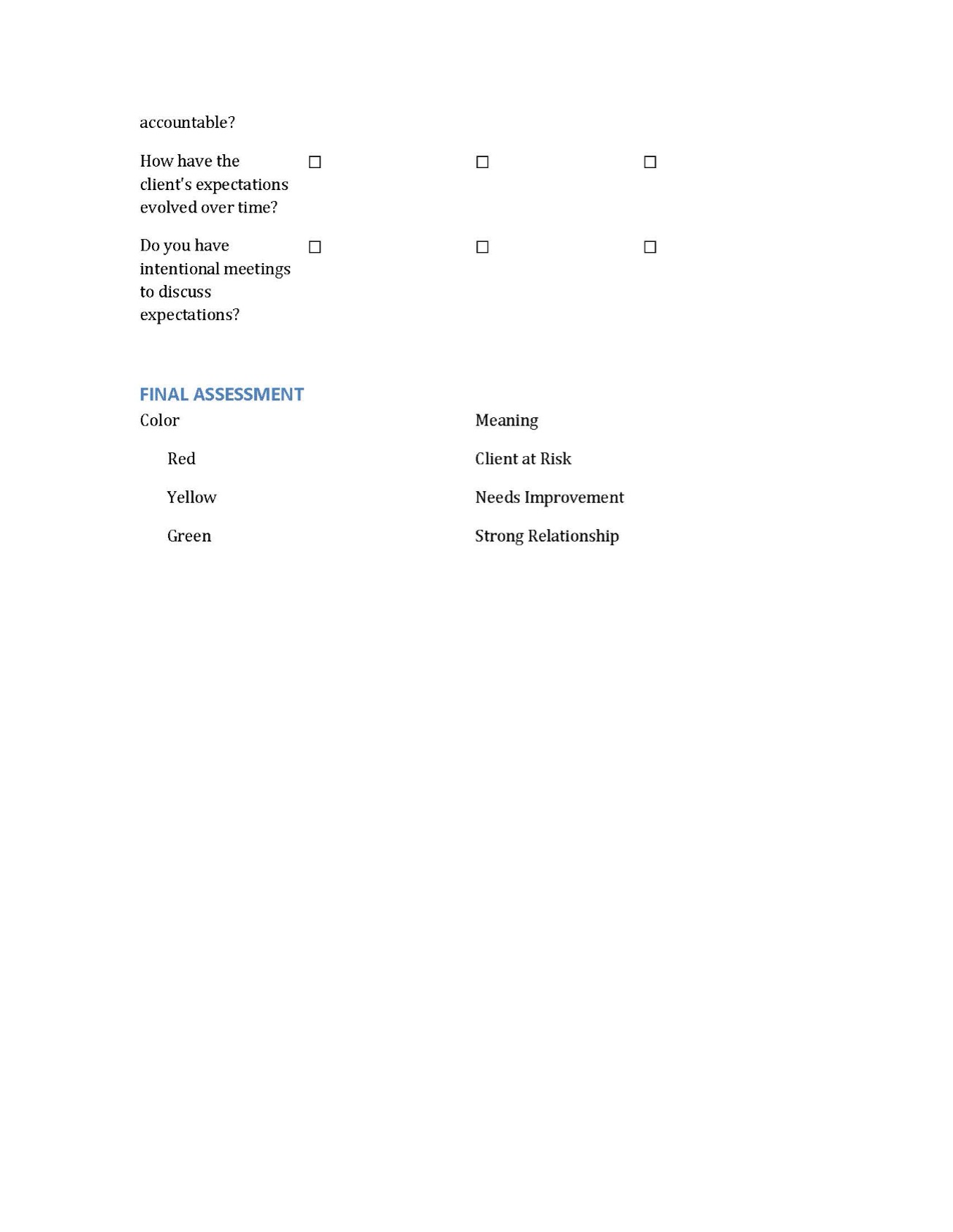 Client retention is a cornerstone of sustainable business success. Many organizations prioritize customer acquisition, but long-term stability relies on retaining existing clients. Without structured assessments, companies risk making assumptions about their performance, missing opportunities for improvement, and failing to recognize threats to client relationships. Internal assessments serve as a reality check, revealing whether a company’s retention strategies, service execution, and engagement efforts are effectively aligned. These evaluations help identify gaps in onboarding, issue resolution, and overall client relationship management.