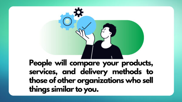 While you may have improved the quality of your product or service, and delivery as well as you ever have, those aren’t the only factors that unique purchasers will take into account. No matter who you are, people will compare your products, services, and delivery methods to those of other organizations who sell things similar to you.