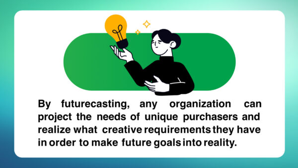 By futurecasting, any organization can project the needs of unique purchasers and realize what creative requirements they have in order to make future goals into reality. That way, when you find your organization in the future, you will already have many of the tools and strategies you need to succeed in the goals you had set in the past.