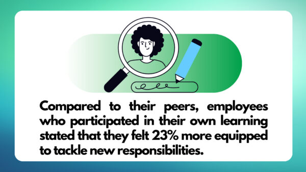 Building a collective mindset that thrives on curiosity is vital because when employers promote a culture that supports learning and progress, staff members are more eager to take on new responsibilities. Compared to their peers, employees who participated in their own learning stated that they felt 23% more equipped to tackle new responsibilities. This makes it possible for companies to expand into emerging sectors and advance staff members internally. The effective acquisition of new abilities by employees boosts their confidence, and they can additionally pass on what they’ve learned to others, which adds to their job satisfaction.