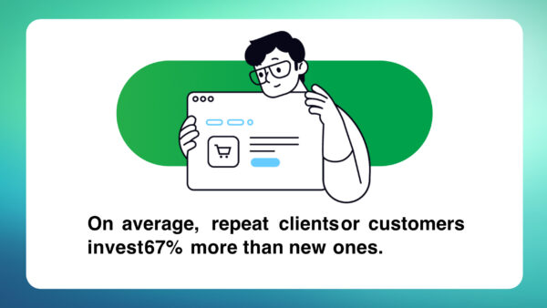On average, repeat clients or customers invest 67% more than new ones. Plus, it usually costs about 5 times more to acquire a new customer than to keep one you already have.