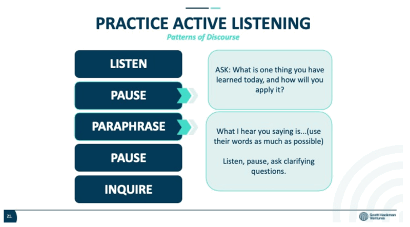So now that you’ve asked and gained further insight for clarity, success, or alignment, on to the next part of the conclusion section of a crucial conversation. Don’t assume the change (of behavior, outcome, results, process, or whatever it is you had a crucial conversation about). Verify the change. Ask them how they see themselves implementing the change over the next week or two and what might be potential roadblocks for them.