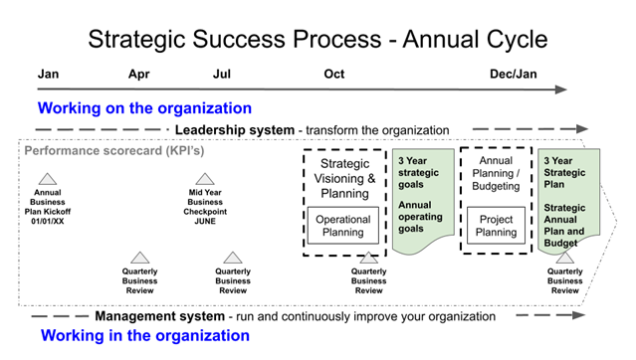 The Strategic Success Process (SSP) runs on a two (2) year annual planning cycle. The following pictures illustrate the SSP and its annual cycle.
