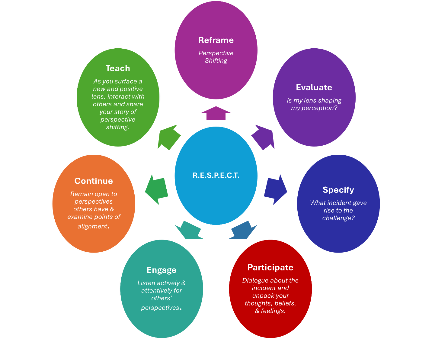 The R.E.S.P.E.C.T. Framework is a proprietary, actionable methodology designed to systematically embed inclusive leadership practices into organizational culture. It follows a continuous, stepwise process that supports leaders in reimagining decision-making, fostering equity, and cultivating psychological safety.