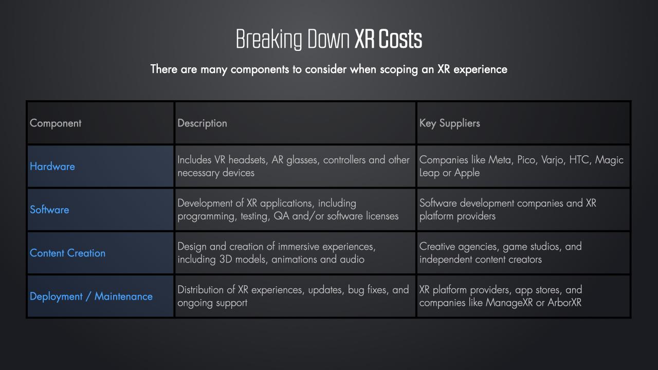 Second, improvements in hardware form factors and reductions in device costs will eliminate many current adoption barriers. The emergence of lightweight, affordable mixed reality devices will make XR accessible for routine business use rather than specialized applications.