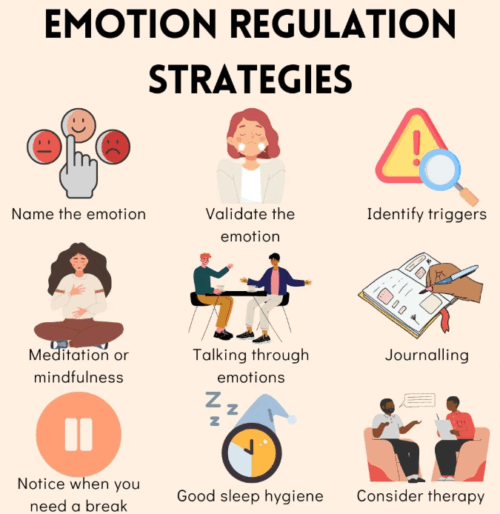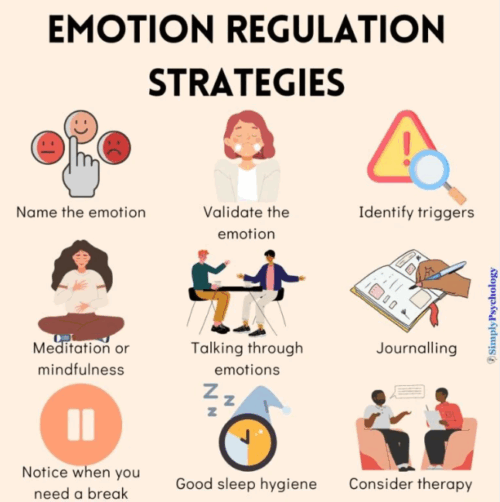 • Impulse Control: Redirecting strong emotional impulses (anger, fear) into constructive strategies—pausing before reacting, breathing techniques, or reframing negative thoughts.